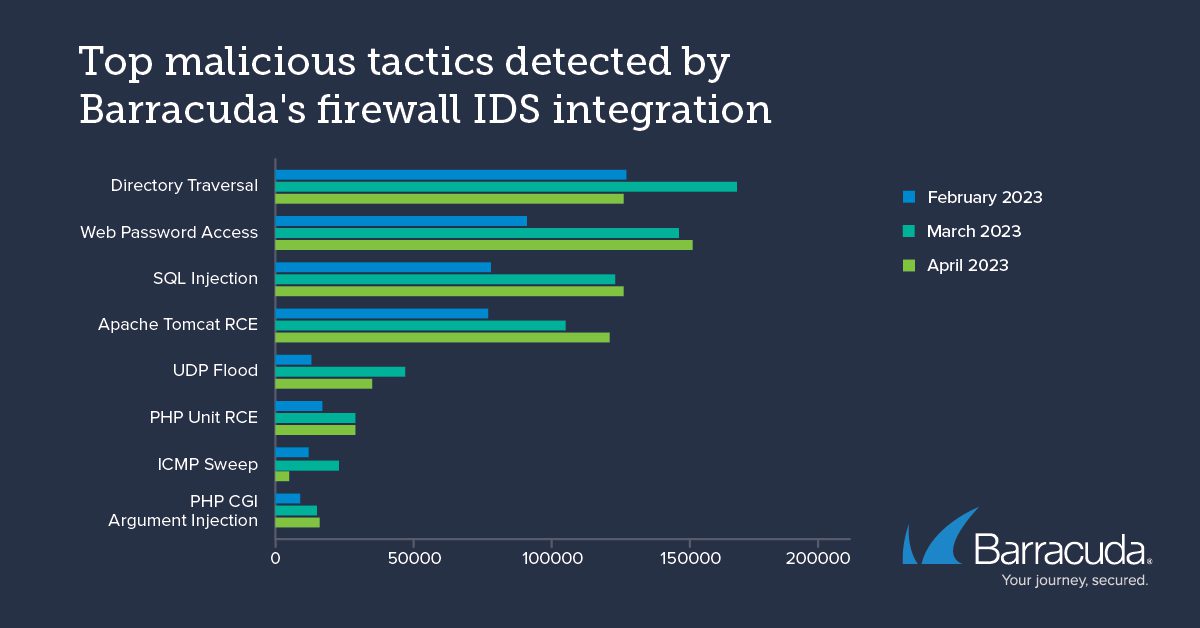 Top malicious tactics detected in early 2023 by Barracuda’s firewall IDS integration