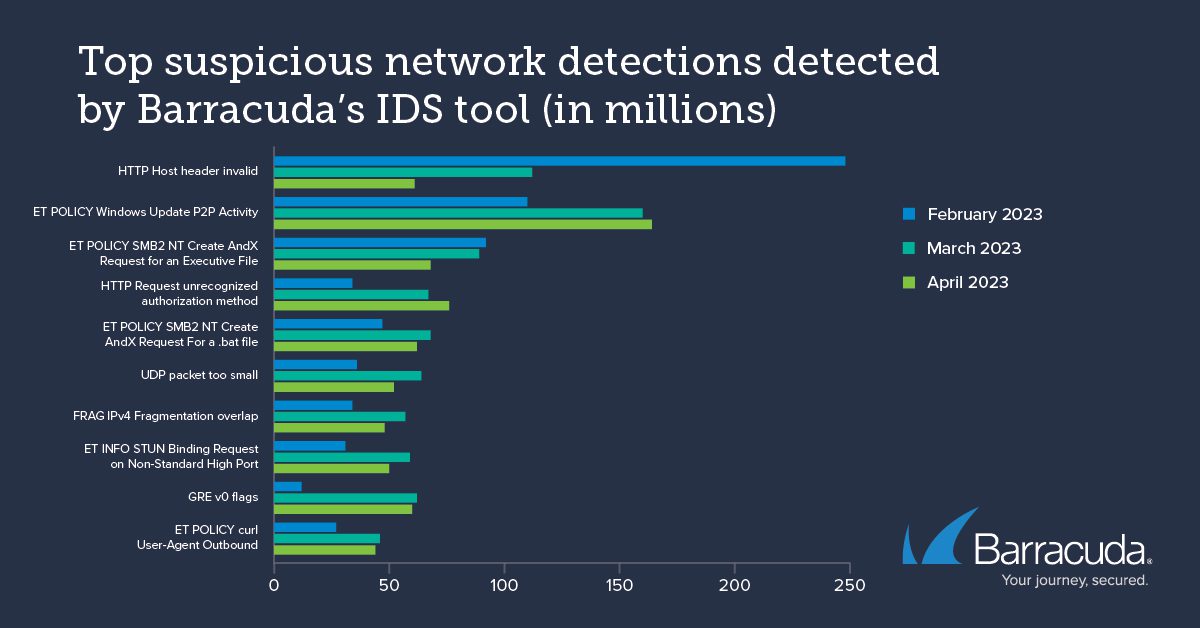 Top suspicious tactics detected in early 2023 by Barracuda’s IDS tool